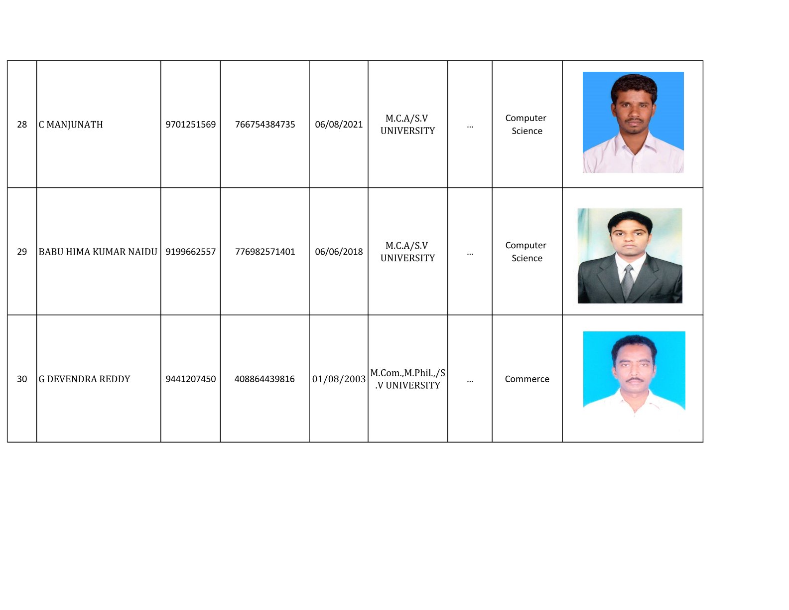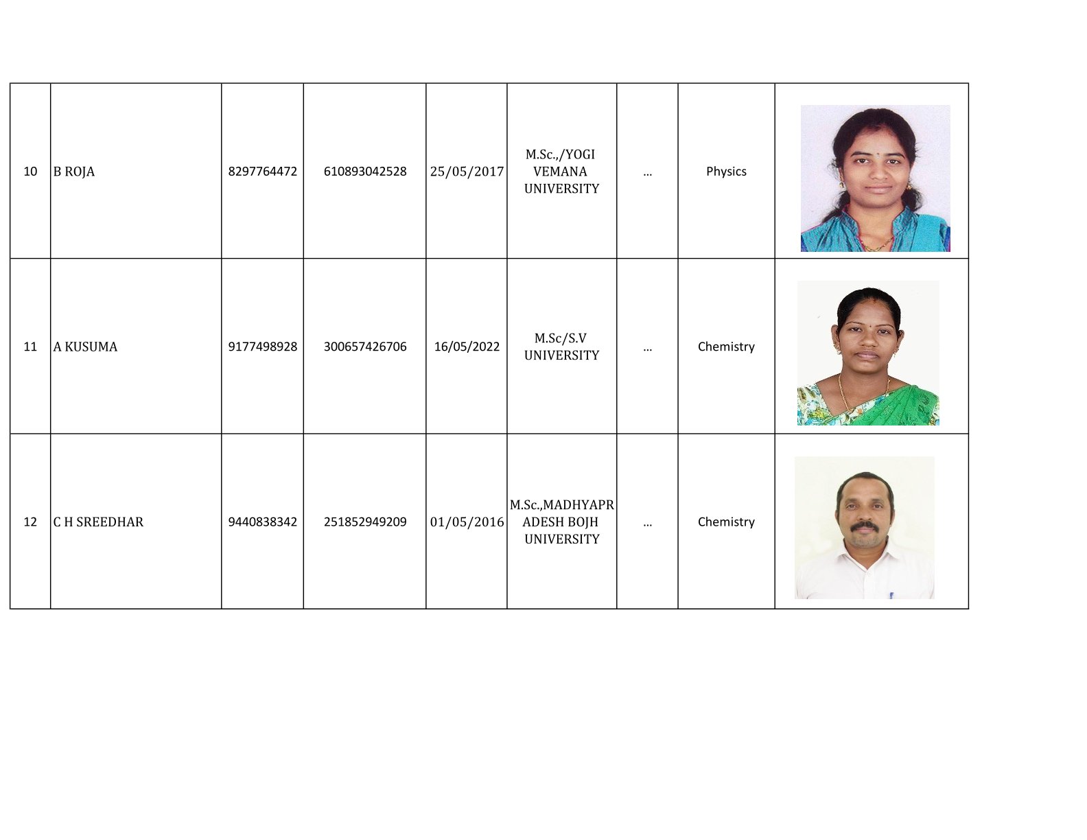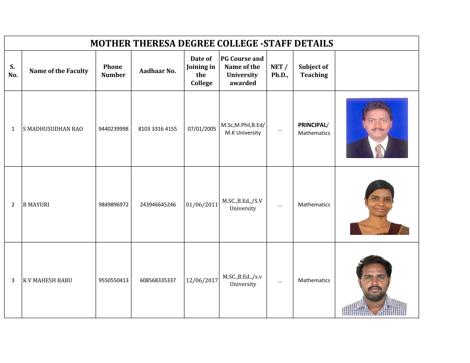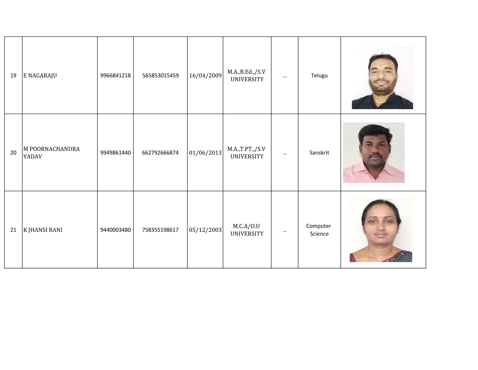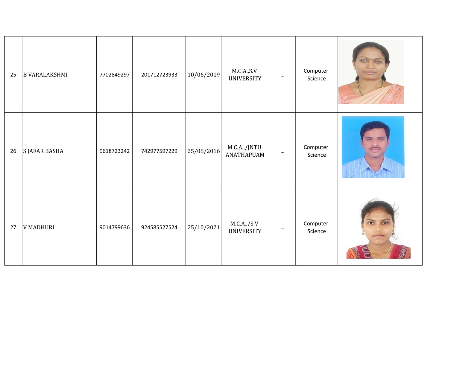 Examination Cell Incharges
