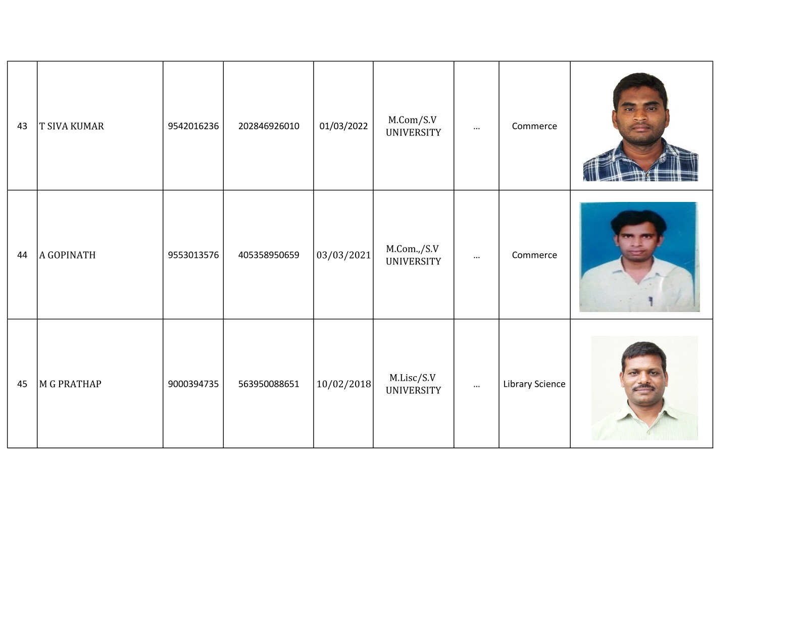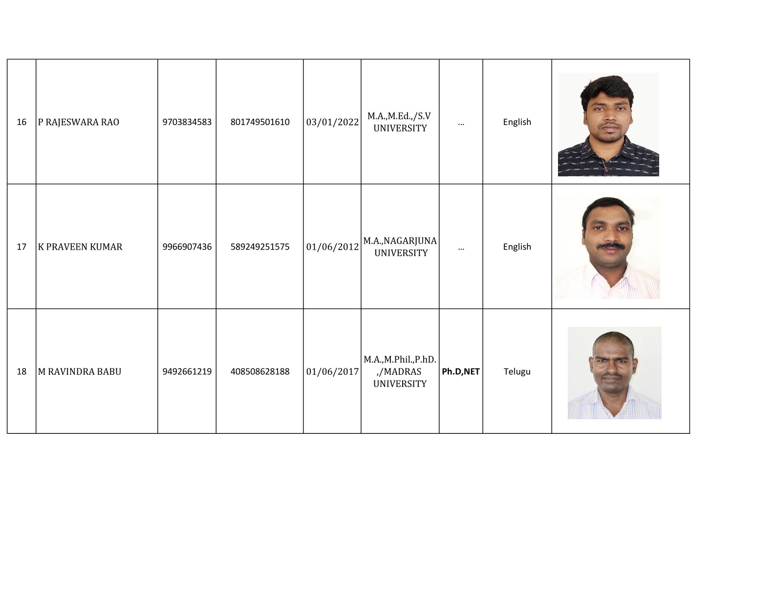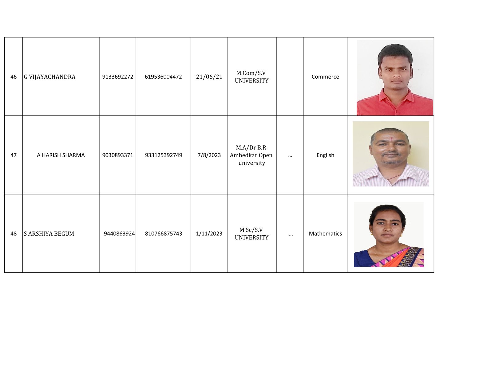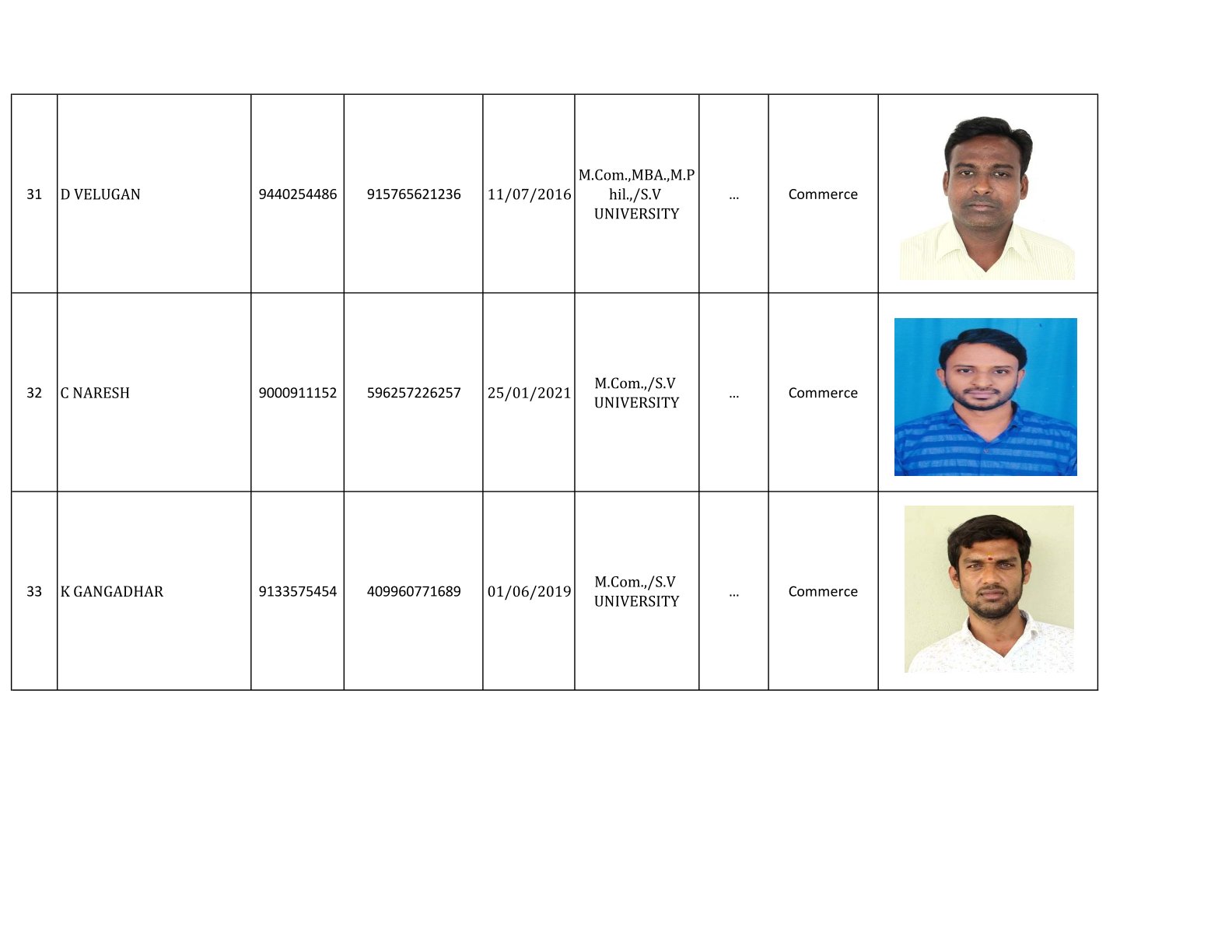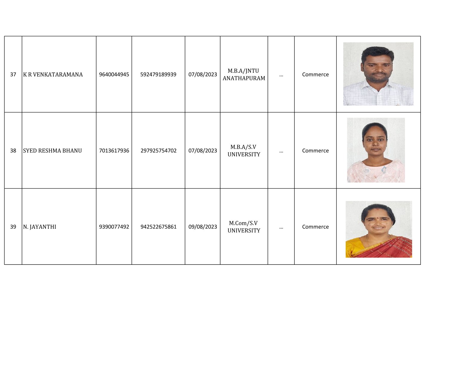 Examination Cell Incharges